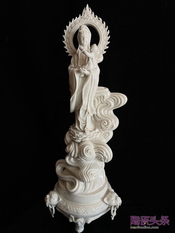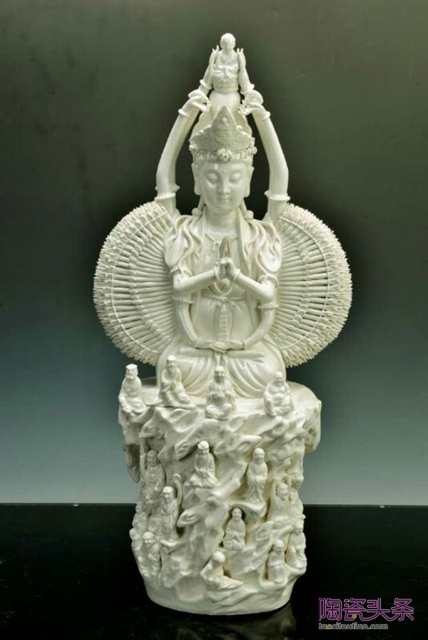 陈老先生在雕塑这块是有慧根的,再加上自身的勤勉。很快,陈老先生就熟练掌握了陶瓷雕塑创作的技艺要领,再复杂的雕塑作品也能独立完成。金龙、千手观音、弥勒、达摩、仕女等题材都是陈老先生的代表作品。