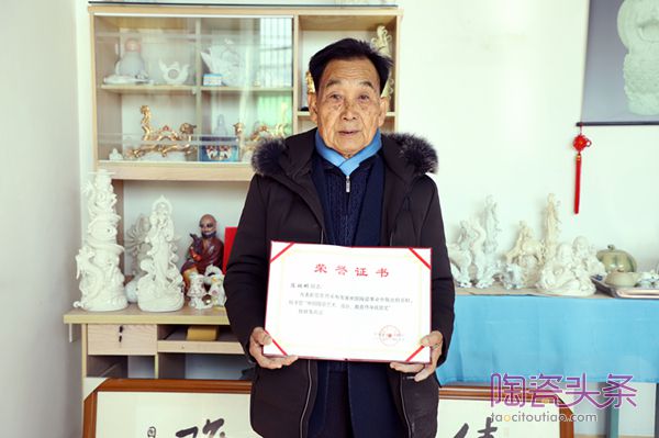 陈老先生是一个低调的人,1997年从国营瓷厂退休回来,就直接进入儿子陈武聪的陶瓷厂做技术顾问,继续默默做着他喜爱的陶瓷雕塑,鲜少露面。陈老先生淡泊名利,在陶瓷行业贡献了大半生,却鲜少去参评荣誉职称。“我们那个年代做陶瓷重视的是技术,给厂里带来经济效益,如果表现优秀,厂里也只是奖励一些实用的小本子等等,心思大都放在技艺的专研上。”陈老先生说道。因此,在这样的工作环境中成长起来的他,心性纯粹,一心致力于工艺的专研。