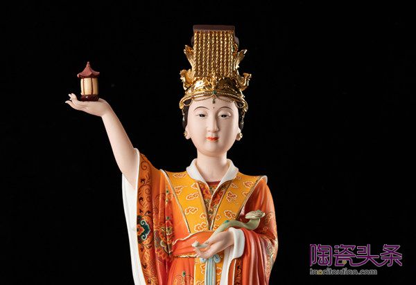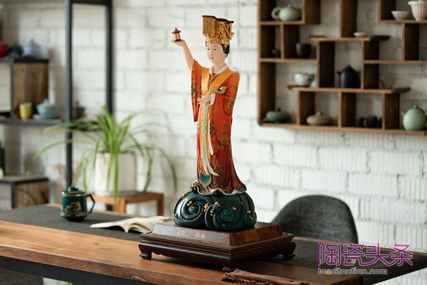 为纪念妈祖的英雄事迹与文化精神,在瓷都德化的进宝陶瓷文化艺术研究所里,福建陶瓷艺术大师陈进宝,应用陶瓷材质与瓷雕工艺,创作了一尊立于海浪之上,头戴凤冠冕旒,身着黄袍,披斗篷云肩,一手持玉如意,一手托灯塔的护海女神像——妈祖。
