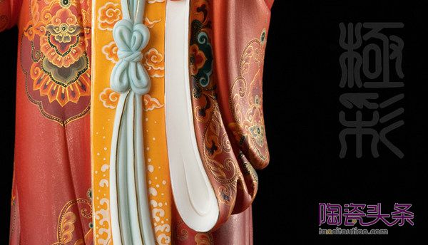 整件作品做工精美,一刀一刻都潜藏着陈进宝多年技艺的沉淀与精华。加彩款与纯白款各有风采。纯白款彰显“·德化瓷”特色,白如傲雪,莹润如脂,充分将妈祖纯净圣洁的品质展现出来。而加彩款,经高温矿彩多层叠彩、烧制,使得色与瓷融为一体,使得作品更丰富多彩,充分展现出了妈祖的雍容华贵与秀美端庄。