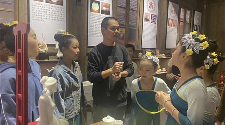 开幕式结束后,与会嘉宾来到展区观赏《脱险》《法乳一脉》《胼手胝足》《荷和》等工艺精湛的陶瓷艺术作品,了解其背后感人至深的爱国故事。