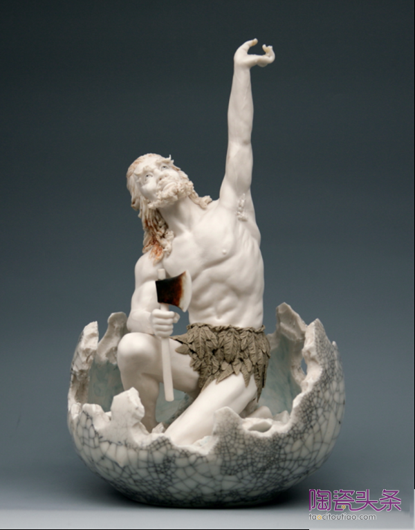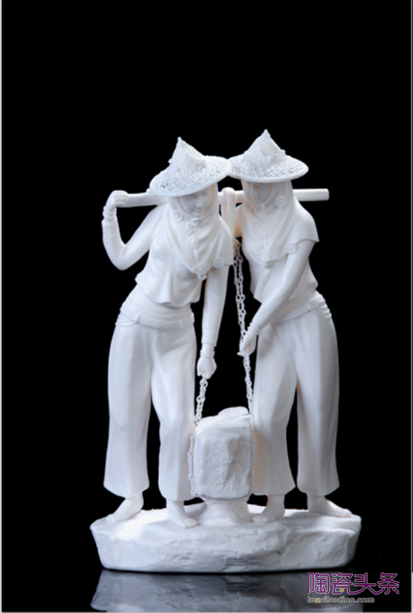 在分析学习德化白瓷经典作品方面,明良极其下功夫。他悉心体会前辈倾注于烧造工艺的匠心,不断改良优化胎釉配方,成功研制出“象牙白”“猪油白”“葱根白”“孩儿红”等传统瓷质釉色,同时还创造性地烧制成功“珊瑚红”等新品。立足于工艺正统的恪守传承,明良也在塑造方面刻苦钻研,不断探索出新之道。多年来,他辗转中央工艺美院陶瓷雕塑设计系、清华大学美术学院工艺美术系、中国艺术研究院等高校学府研修学习,虚心接受老师和同道的指点,不断拓宽、提高自己的人文视野和审美眼光。由此养成的豁达明睿,使他善于结合当代艺术与技术,灵活运用“何派”技法,以至创作出一批独具匠心、时代特色鲜明的优秀作品。譬如,突破传统体量的《千手观音》,融入薪火意境的《千年窑火》,采用大写意手法的《一苇渡江》,展现原生态粗犷之美的《盘古开天地》,融汇现代科技生活与古代神话的《相逢》,以及将时代文人气质融入文昌帝君形象的《志在书中》,等等。他还创作了一些直接反映当代社会生活的瓷塑作品,如《恵女风情》以写实手法塑造了两位惠安女形象,作者选择抬石头这一典型劳动场景,以生动洗练的姿势把握和形态刻画,表现了中国劳动妇女勤劳朴实、吃苦耐劳的精神风貌。作品上,采用瓷泥编织传统技法塑造的链条、斗笠以及概括处理的传统服饰,以强化的质感和形式趣味增强了艺术感染力。明良设计创作的日用器具既有时代气息又富材质美感,即如为2017年厦门金砖会议所作珍贵国宾礼瓷《日光》,其得体的造型装饰特别适合材料特性,彼此相得益彰的和谐关系更加突显出德化瓷质撼人心魄的精雅之美。