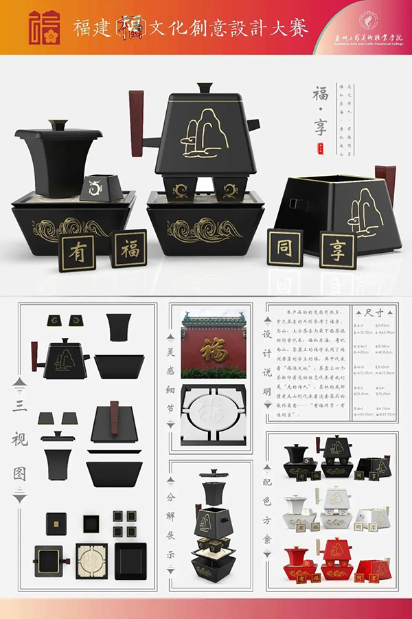 日前,福建“福”文化创意设计大赛初评入围结果公布,泉州工艺美术职业学院27件作品喜获入围,其中学生作品20件,教师作品7件。