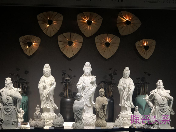 本次展览聚集了邱双炯、柯宏荣、陈桂玉、赖礼同、陈明良、许瑞峰、连紫华等共48位德化陶瓷巨匠的优秀作品,如《天鹅湖》、《升华舞》、《自在持莲观音》、《毛主席像》、《文昌帝君》等德化经典瓷塑。范围涵盖瓷线雕、瓷画、釉画、瓷花、花卉人物、薄胎、瓷洞箫、浮雕、手拉坯、建盏、柴烧以及当代艺术。