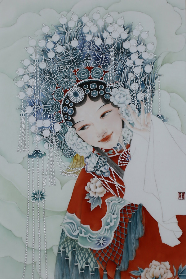 值得一提的是,以京剧花衫角色为原型,绘制的戏曲人物作品《红妆》,由于绘制工序繁多,手法复杂,断断续续耗费了近半年的时间才完工。“这幅作品是忍着画完的,中途好几次想放弃。”曾云燕笑着说道。