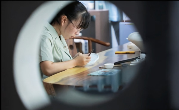 在绘画领域,有一种画叫做瓷画,顾名思义就是在瓷上作画。在德化,有专门一群从事瓷画创作的手艺人,他们以瓷为纸,以釉为料,在瓷上肆意挥洒,尽情作画。任职于德化职业技术学校美术教师的曾云燕就是其中一位。
