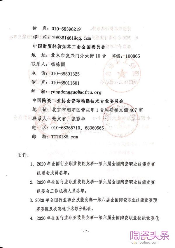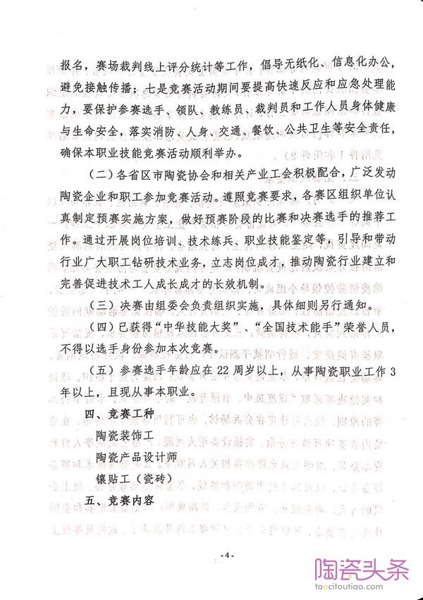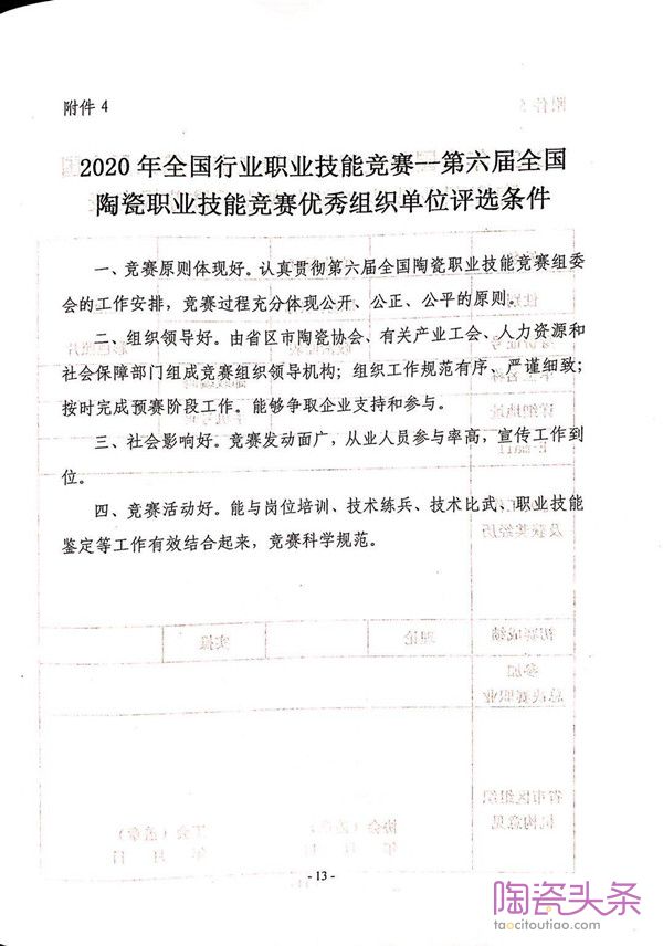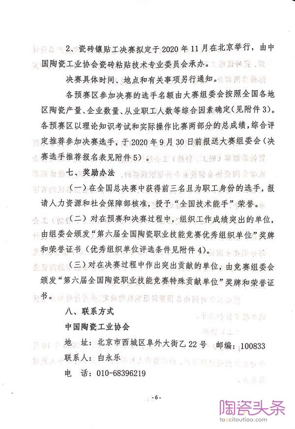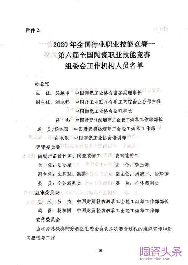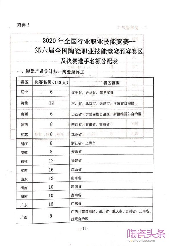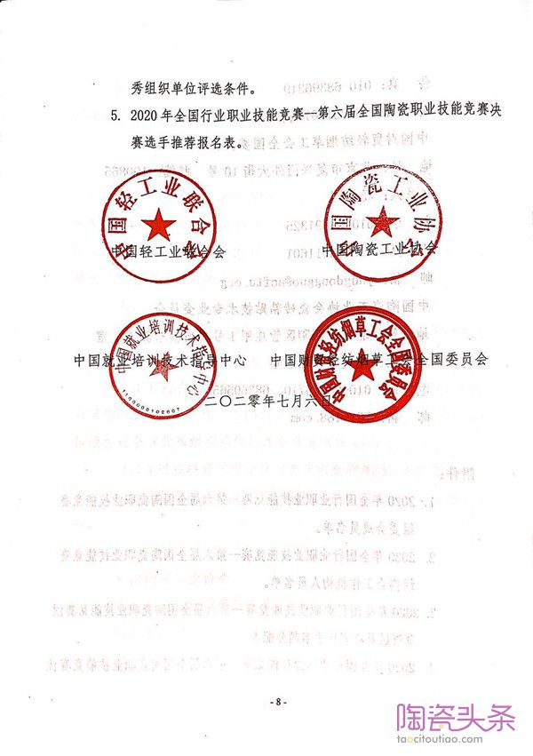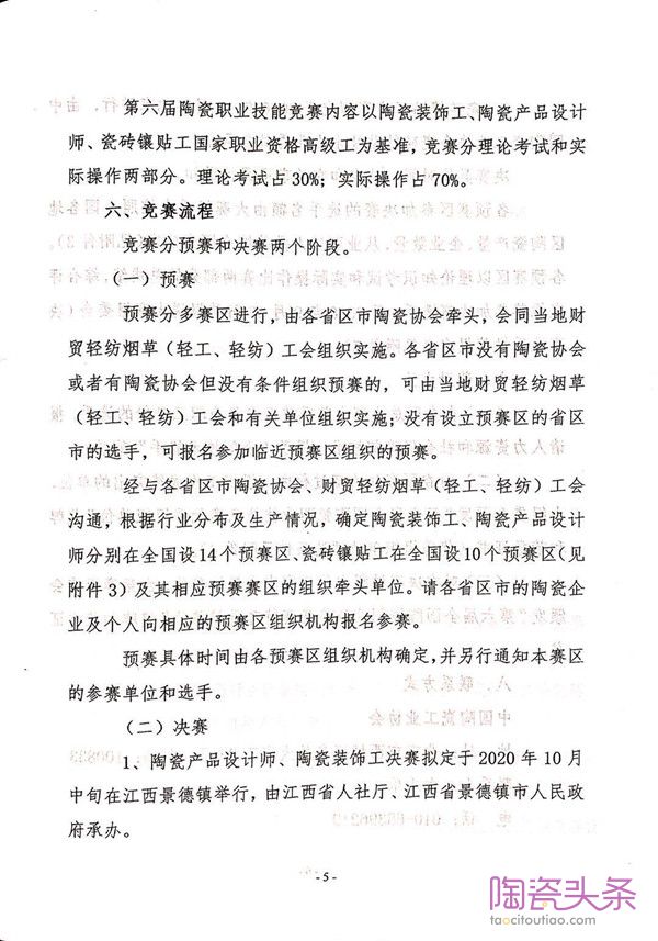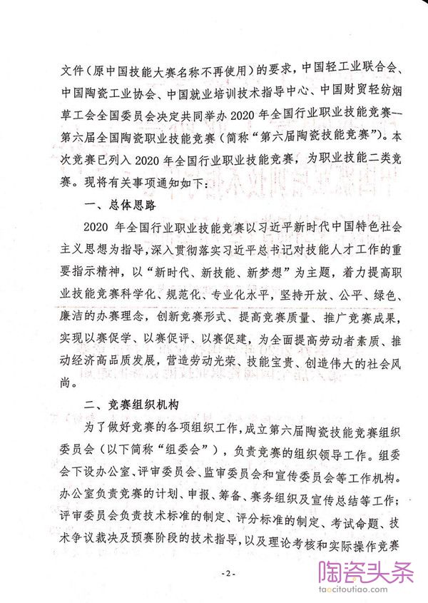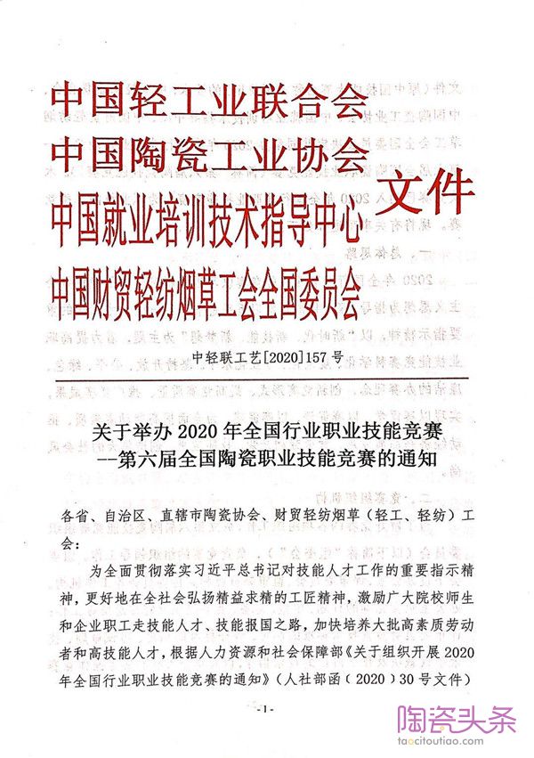 文章摘要:关于举办2020年全国行业职业技能竞赛——第六届全国陶瓷职业技能竞赛的通知