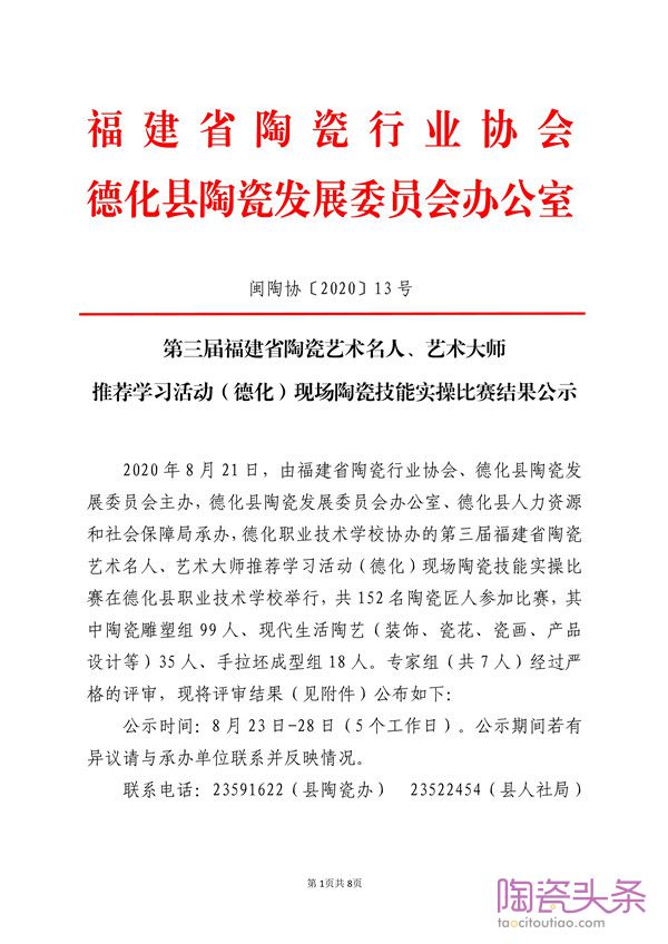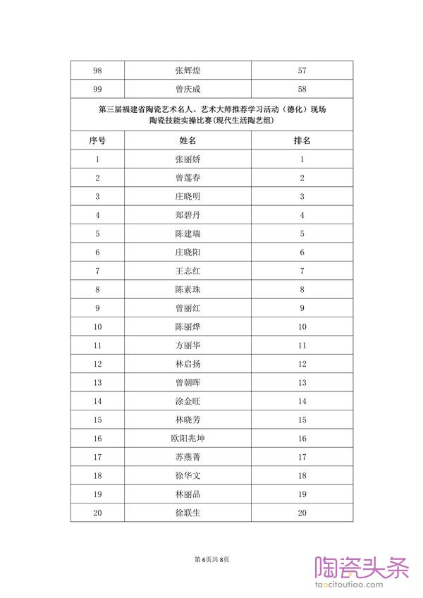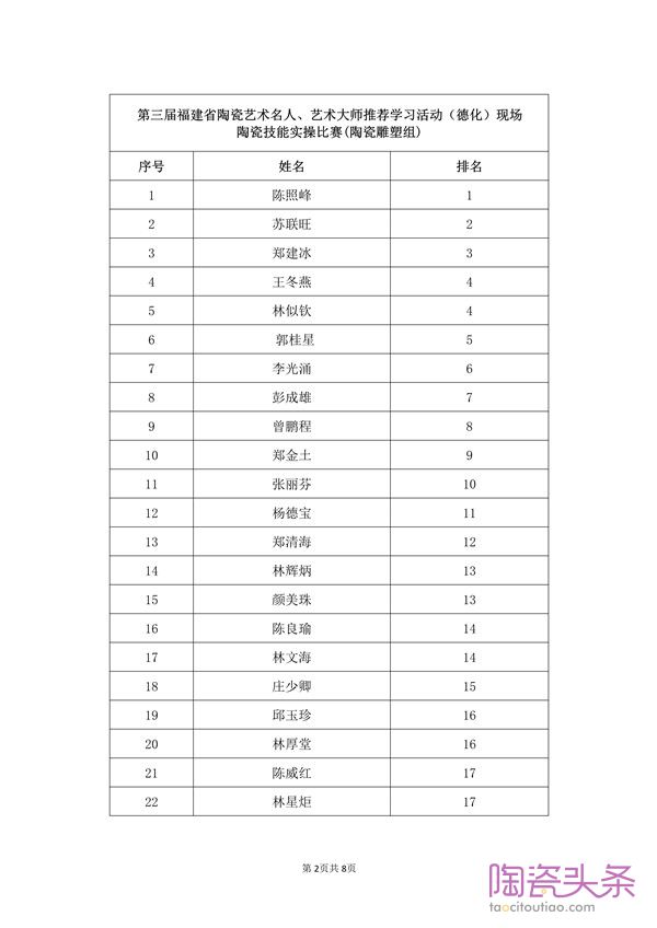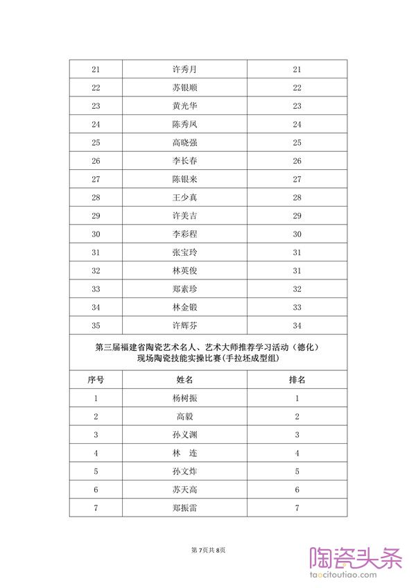 第三届福建省陶瓷艺术名人、艺术大师 推荐学习活动(德化)现场陶瓷技能实操比赛结果公示