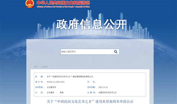 关于“中国民间文化艺术之乡”建设典型案例名单的公示