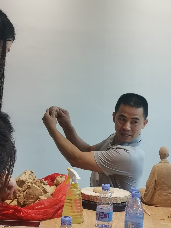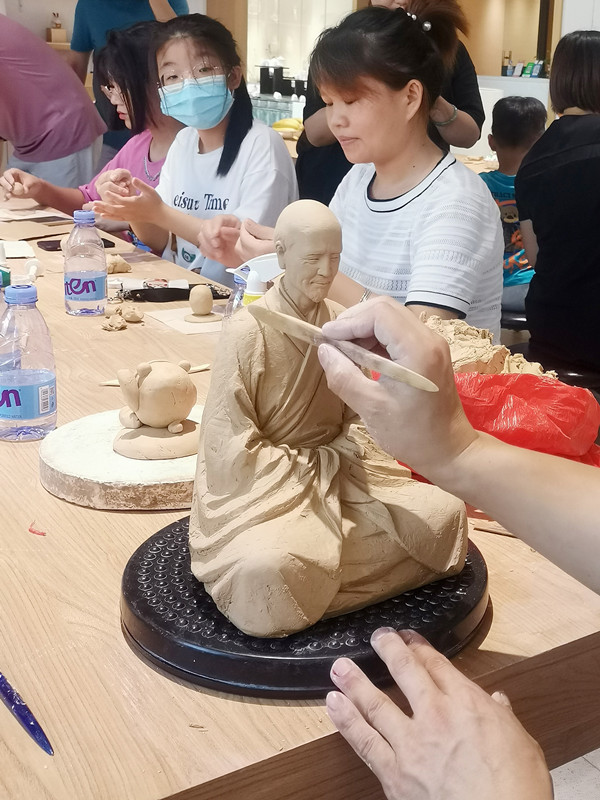 活动上,张明贵老师带来了一件弘一法师泥稿,现场展示泥塑创作的过程,并引导现场的家长和小朋友一起动手体验泥土创作的乐趣。小朋友们在家长的陪同下,以瓷泥为材质,根据自身的思路和审美,创作出造型百态的泥塑作品,欢乐无限,充分调动起了小朋友的积极性。
