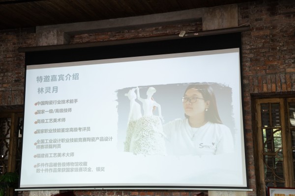 沙龙上,林灵月大师以《雀羽生辉》为切入点,深入讲解了德化瓷塑的历史背景、艺术风格和制作工艺。她细致的讲解不仅让在场的听众对德化瓷塑有了更深入的了解,也对德化这一传统艺术形式产生了浓厚的兴趣。