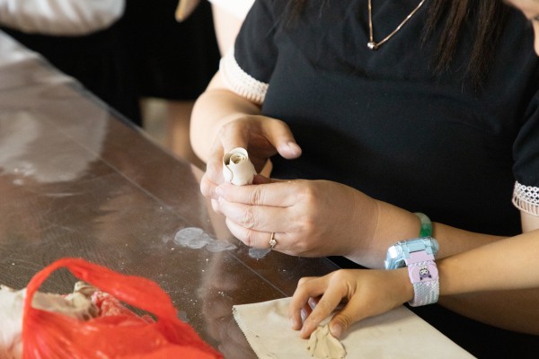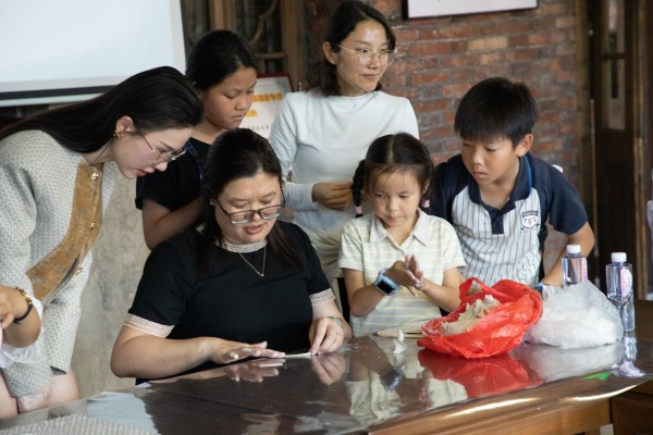 除了理论知识的分享,林灵月大师还亲自示范了瓷花的捏制技法,通过动手操作,耐心指导,让市民朋友们亲身体验了德化非遗瓷花的捏制过程。这种互动式的教学不仅让市民朋友们对陶瓷艺术产生了浓厚的兴趣,也让他们对德化瓷塑的技艺有了更为直观的认识。