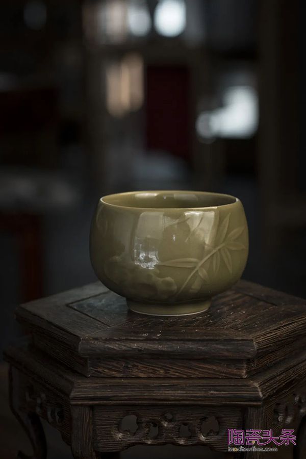 因此,在复刻苏园珍藏的经典器皿的基础上,余丽萍以立体浮雕为画面表达方式,施以青瓷釉色,不仅再现了宋明时期千峰翠色的经典釉色,也让传承千年的器皿得以发扬。可以说,这是传统文化在当下的新表达,也是新一代手艺人发扬中国优秀文化的应有面貌。