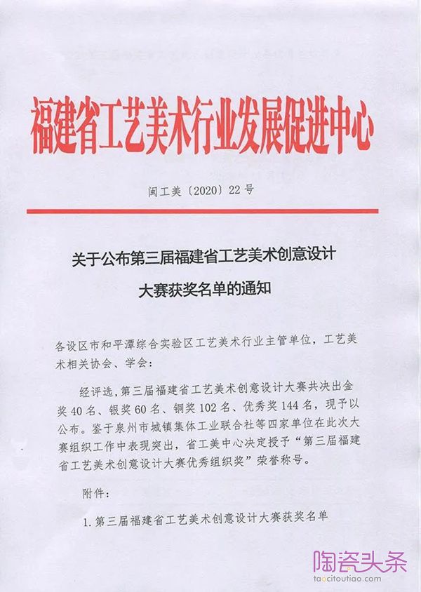 经评选,共决出金奖40名、银奖60名、铜奖102名、优秀奖144名。德化参赛者共斩获7金、11银、13铜、29优秀奖的佳绩。现将德化参赛者获奖名单公示如下: