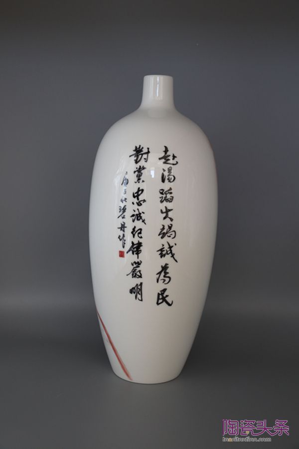 关于瓷绘作品的创作,郑碧丹有自己的一套表现方式。在创作载体上,郑碧丹主要以德化白瓷为创作载体,应用留白式绘画技法,色彩搭配浓烈,注重体现德化白瓷所特有的洁白如雪、温润如玉的特性。“用白瓷衬托画面的靓丽,用画面衬托白瓷的洁净,它们互为整体,又互相衬托,相得益彰。”郑碧丹介绍道。