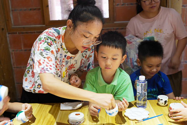 此次活动特邀了德化陶瓷手绘艺人曾燕宝担任活动指导老师,为参与活动的家长和小朋友带来专业的知识讲解与技艺展示。小朋友们在曾燕宝老师的指导下,绘就了一幅幅绚丽多彩的手绘作品,真正体验了一次笔尖上的瓷绘艺术。