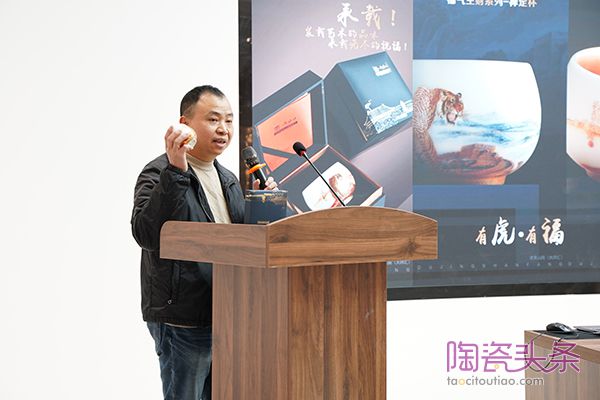 当日的活动中,超300款虎年陶瓷新品亮相发布。徐建勇、郑雄伟从大师的角度分别做了“‘大师IP+产品’组合营销模式”“从传统创作到文创设计的角色转换”的主题分享;豪峰陶瓷曾才贵从销售端的角度作了“市场对大师产品的需求”的主题分享。他们的分享令现场的大师新秀、企业代表深受启发、受益匪浅。