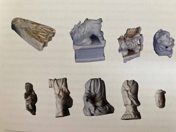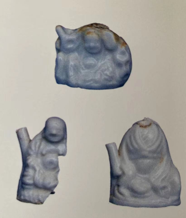 Figure 3: Fragments of incense stick holders in the shape of lions. 图3: 狮子形状的香烛的瓷片。