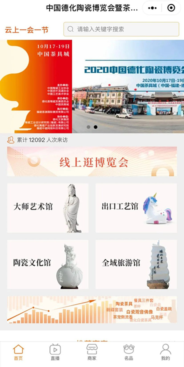 实现全域推广,通过与淘宝天猫、玩物得志、微拍堂、东家等电商平台联动,在显要位置进行推广引流,锁定精准直播人群,进行云采购,全面推介德化本土好企业好产品,打响“世界陶瓷之都、中国瓷都”品牌。