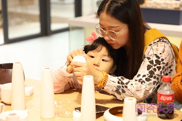 在DIY体验活动上,张丽娇老师鼓励现场的来宾发挥想象,自由创作,并现场指导陶瓷绘画技艺。大朋友小朋友们各显神通,用一根小小画笔,绘出多彩的陶艺世界,件件生动美妙,富有个性。