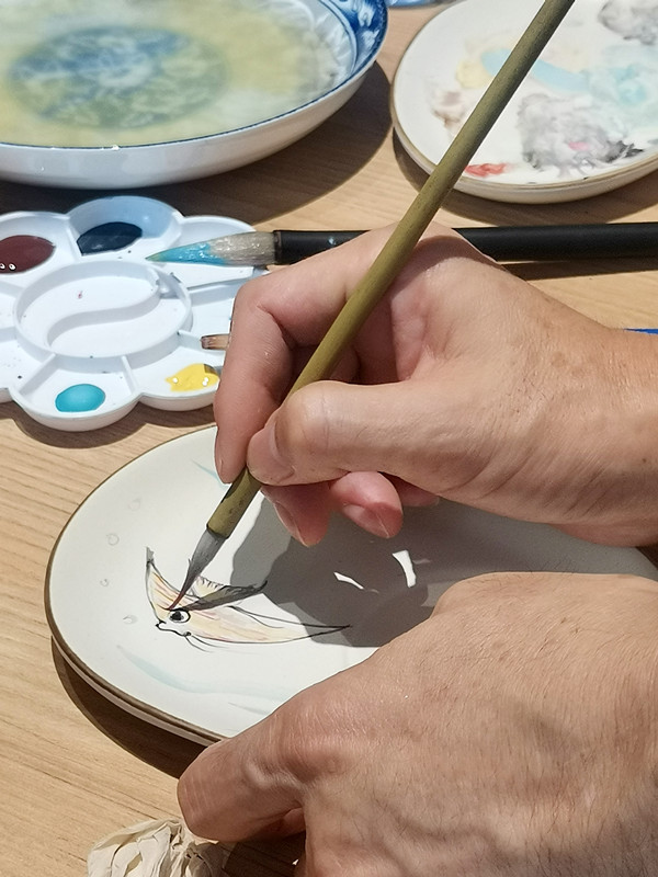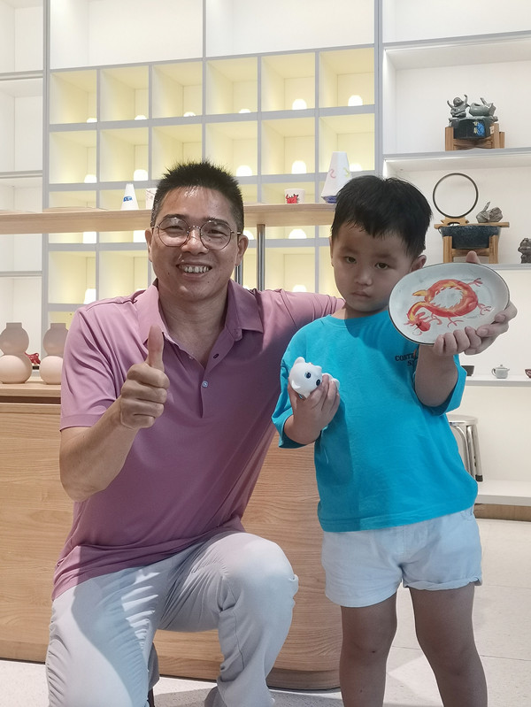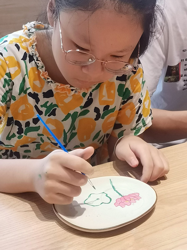 梁双升老师鼓励现场的来宾发挥想象,自由创作,并不时指导小朋友们进行陶瓷绘画创作。小朋友们各显神通,用一根小小画笔,绘出多彩的陶艺世界。他们也在创作中体验到了瓷绘艺术的魅力,增长了自身的认知,收获满满。