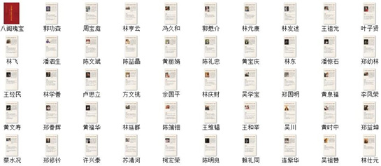 2014年,海峡文化艺术品保护基金会出版《八闽瑰宝——八闽中国工艺美术大师合集》,是最早对全省国大师进行系统介绍的专著,是迄今为止最为学风严谨、内容权威者。但由于出版时间较早,未收录2018年新评选出来的第七届之十一位国大师。