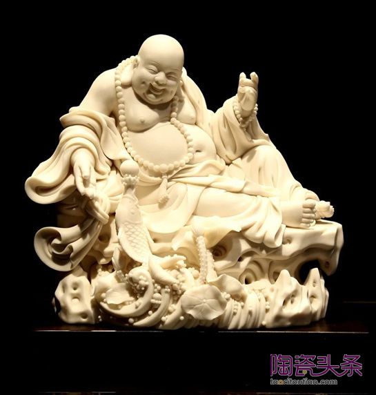 苏清河《观鱼戏珠弥勒》莹玉红▲