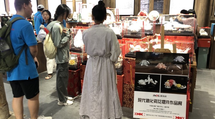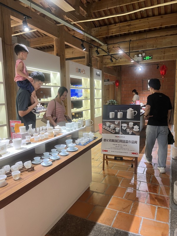 2023年5月,德化瓷高端日用器皿作品展在推广展示中心(晋江馆)开展,展览展出德化冰种玉瓷、羊脂玉瓷茶器办公杯、茶器等高端日用器皿20件,涵盖手绘工艺、文创设计、闽南主题产品等,集中展现德化优质的陶瓷品质与工艺设计,引得游客纷纷驻足欣赏,对展出的德化高端日用器皿赞不绝口,有效提升德化陶瓷品牌的美誉度。