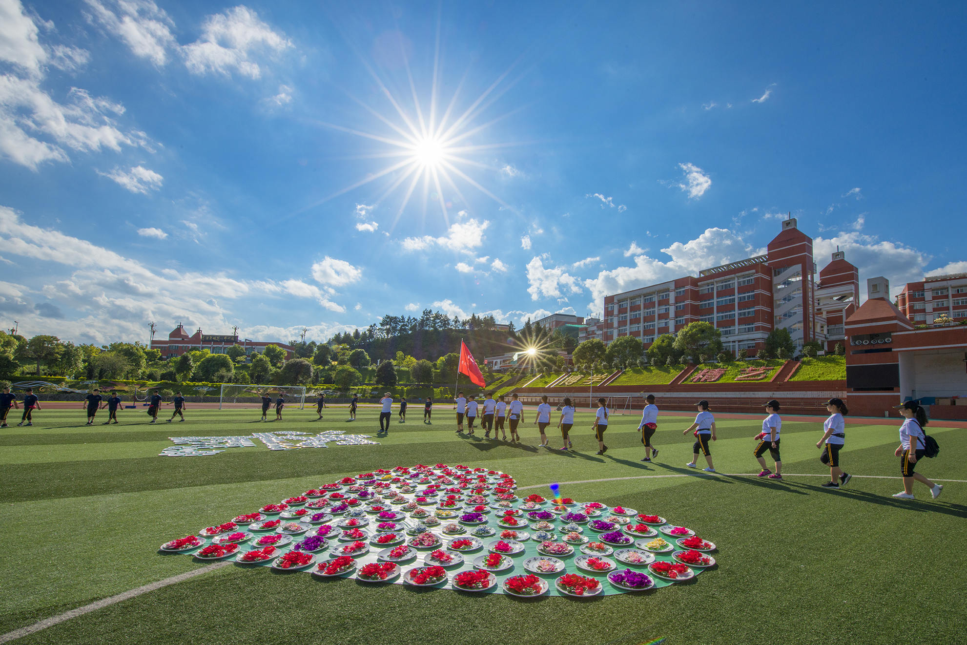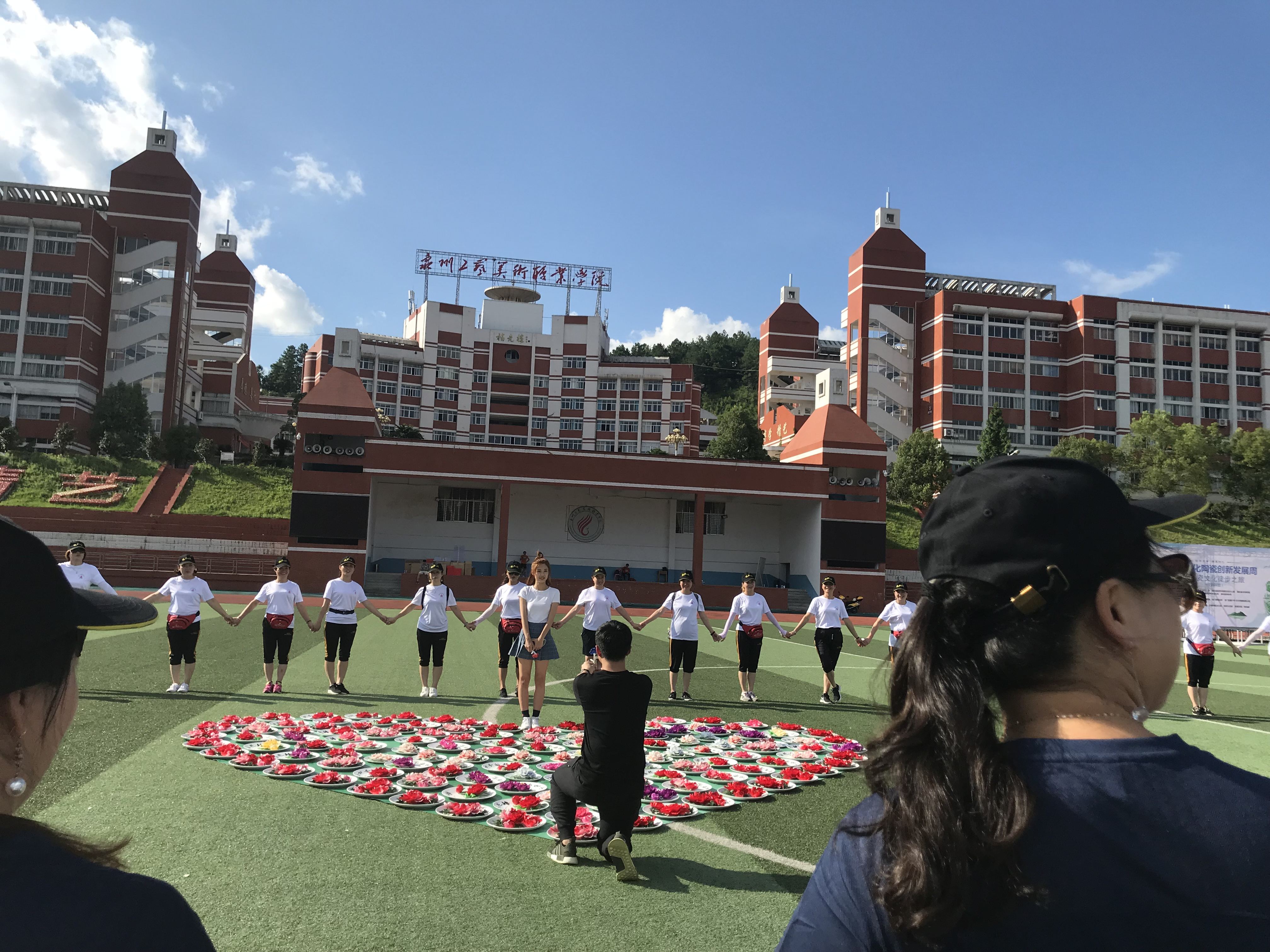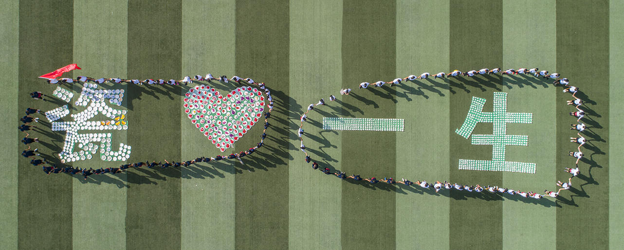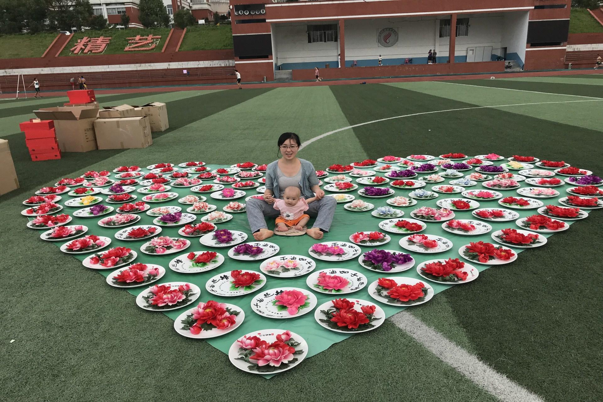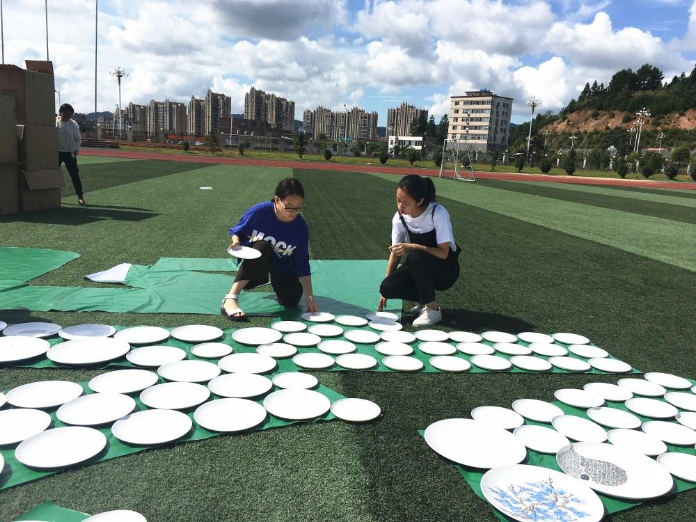 活动开始前一天,为了让活动参与者进一步感受德化陶瓷文化的趣味性,主办方在徒步之旅的起点——泉州工艺美术职业学院的操场上,用520个瓷花盘和1314把白瓷壶分别摆成“瓷I❤”“一生”四字,象征一生一世,一生幸壶(福)。在活动准备现场更有100名徒步协会人员的积极参与,抖音网红穆小申、情侣和亲子的甜心助力,为活动增添了一抹粉红色的色彩,传达出浓浓的“爱”意。