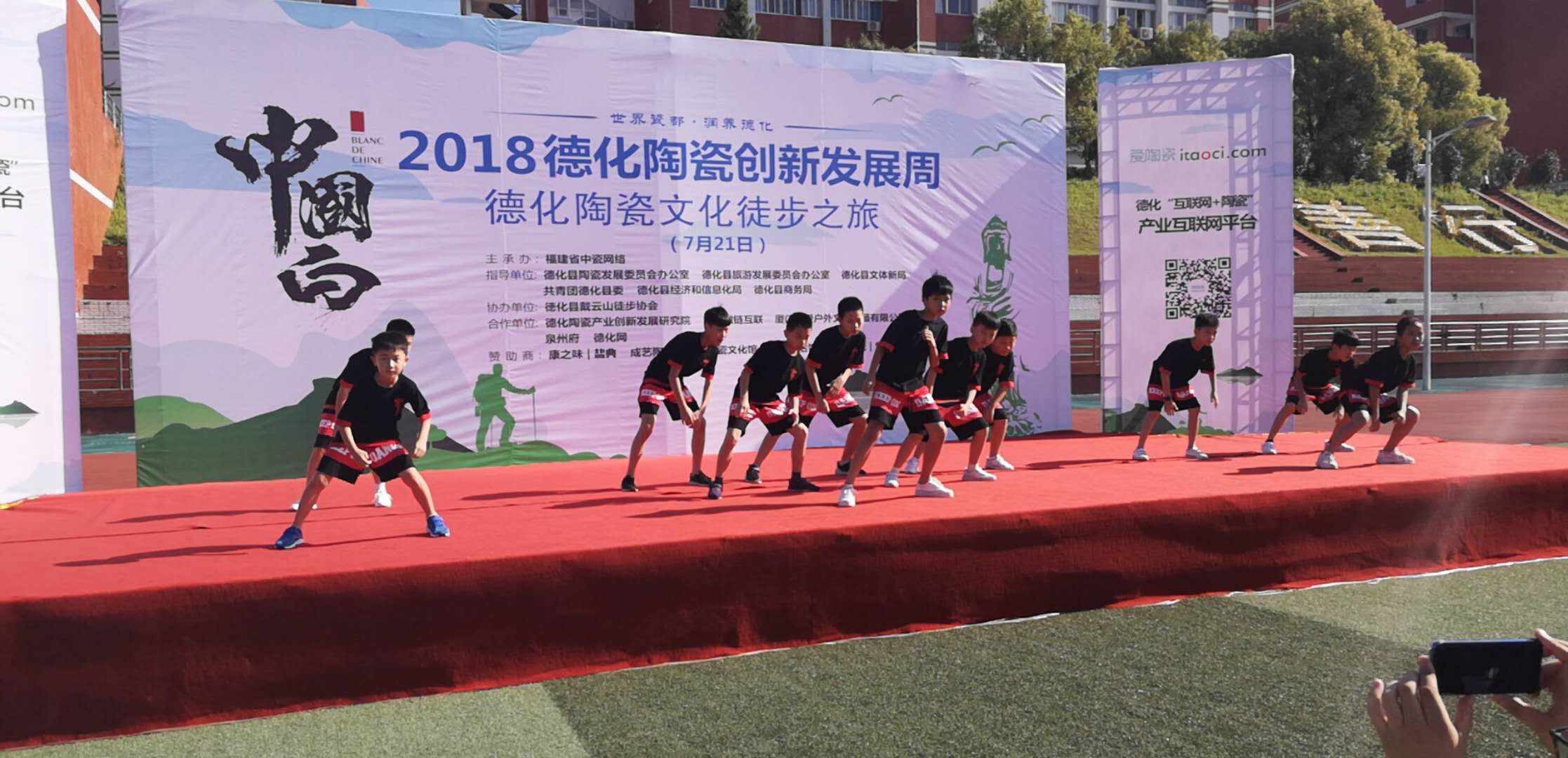 7月21日早上,徒步之旅活动现场气氛异常火爆,来自全国各地的徒步爱好者相聚于泉州工艺美术职业学院,燃爆激情的街舞,现场大约1680名的徒步爱好者磨脚霍霍,一声划破瓷都天际的鸣枪声响起,“”2018德化陶瓷文化千人徒步之旅暨七夕“瓷爱一生”主题活动正式点燃热情,火爆开启!