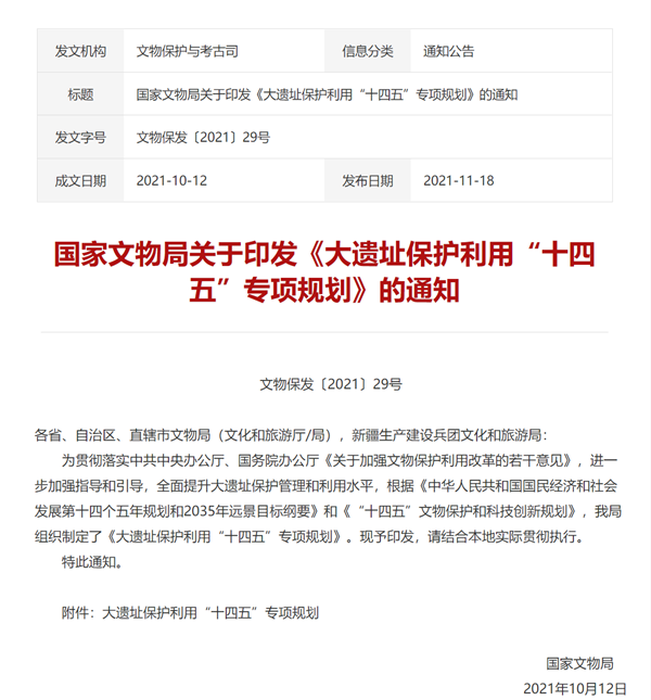 国家文物局关于印发《大遗址保护利用“十四五”专项规划》的通知