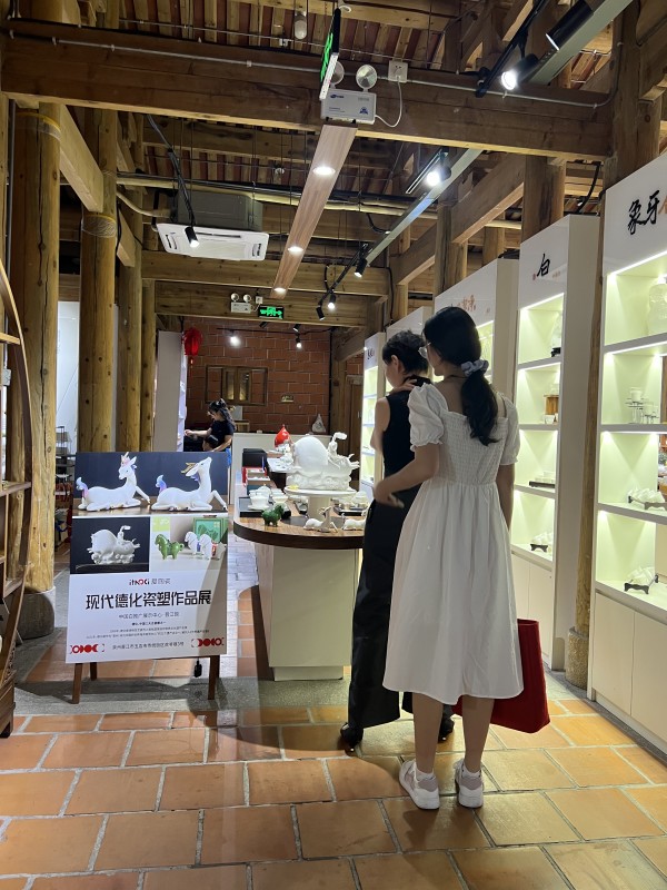 2023年6月,现代德化瓷塑作品展在推广展示中心(晋江馆)开展,展览展出德化陶瓷艺术大师、新秀等瓷塑作品25件,涵盖人物、动物、瓷花等摆件,以此展现德化现代陶瓷手艺人的工艺传承与创新思维,为晋江的市民朋友讲德化瓷塑的文化故事。展览为期一个月,欢迎陶瓷爱好者前往品鉴欣赏。