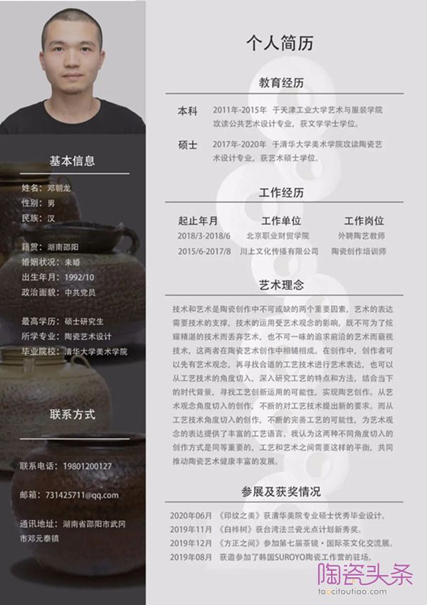 2013年毕业于清华大学美术学院陶瓷系硕士,师从李正安老师;