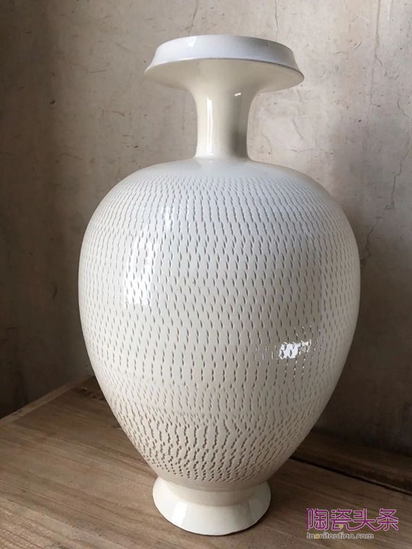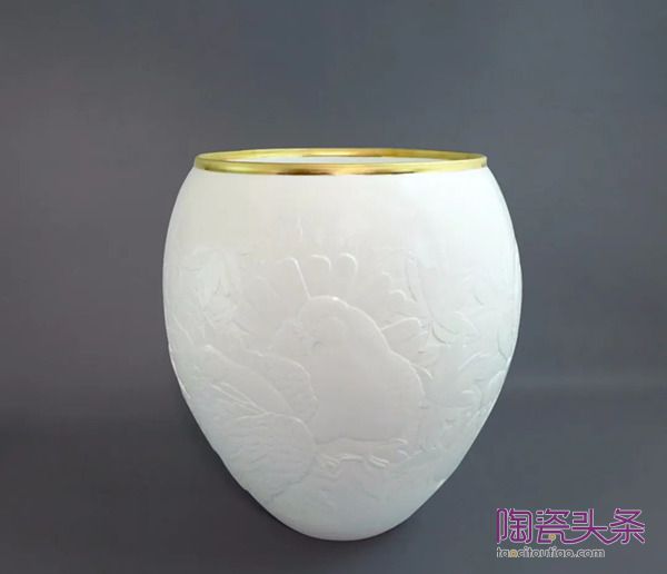 黄萍 汉光瓷浅雕《天下永和》瓶