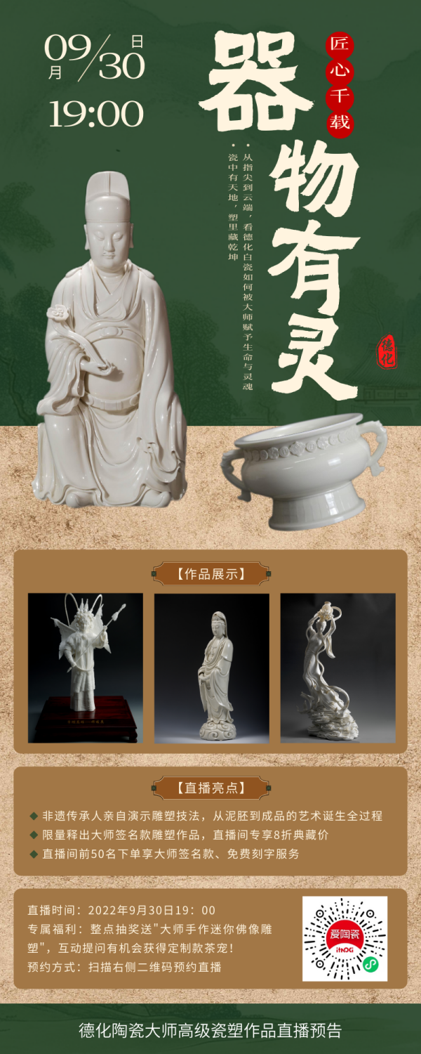 「匠心千载·物有灵」德化陶瓷大师高级瓷塑作品直播预告