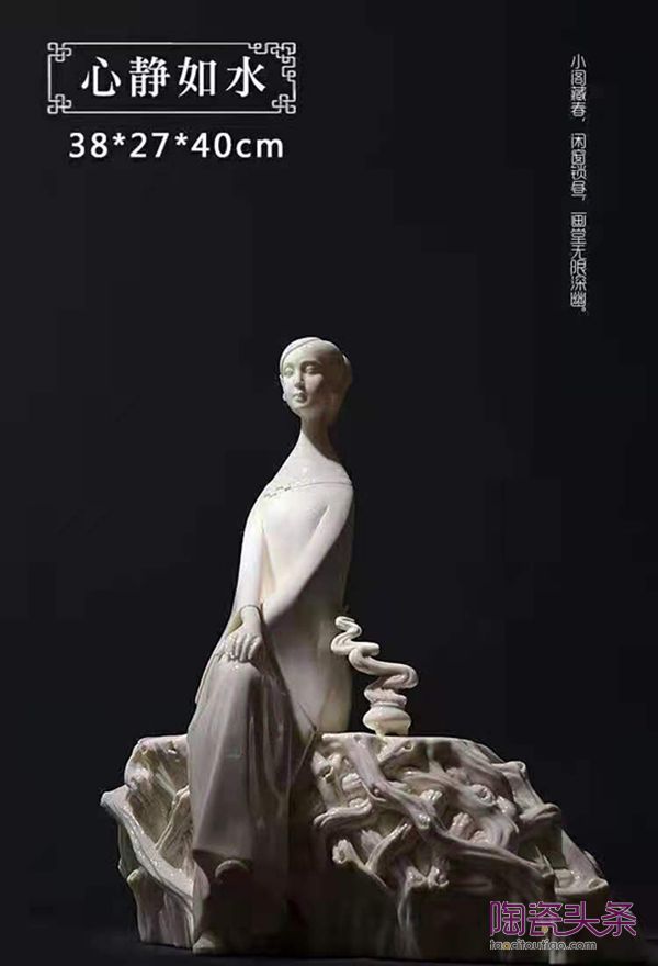 因取材于元曲《小桃红·晓妆》,所以作品也取名为《晓妆》。作品塑造生动别致,通过衣纹勾勒人物内在的线条曲线,设计巧妙自然,充分将女子镜前梳妆的那种慵懒感展现出来。既体现了作者高水平的瓷雕工艺,也留给观赏者足够的想象空间。