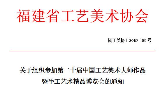 关于组织参加第二十届中国工艺美术大师作品暨手工艺术精品博览会的通知 关于组织参加第二十届中国工艺美术大师作品暨手工艺小陶陶 2019-06-05 2096