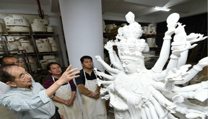 8月9日,101尊德化白瓷“百态观音”造像,亮相2018中国(兰州)丝绸之路国际赏石文化节暨第11届中国(兰州)艺术品收藏博览会。由21位德化当代瓷艺大师携手创作,历时6年完成的“百态观音”白瓷作品特别展出,其造像情态各异,纹饰多样,千姿百态,各臻其妙。 2019-08-13当德化瓷遇上其他综合材料