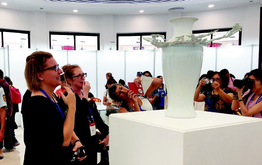 8月3日,“拍平”中的泥片哲学——罗小平教授雕塑泥片成型技艺高级研修班作品展在德化县博物馆开幕。此次集中展览了上海大学美术学院教授、博士生导师罗小平和27个学员用罗氏泥片成型独门技艺创作的100多件雕塑作品。在为期10天的雕塑泥片成型技艺高级研修班,罗小平教授理论联系实际,做中教,将三十多年摸索创立的罗氏泥片成型独门技艺传授给来自全国各地的学员,帮助他们提高造型表现力及审美修养。短短的十天,学员们将学习与创作融为一体,学习成效每日“倍增”,最终呈现出“1+27”道艺术大餐,给参观的市民带来了一场视觉盛宴。 2019-08-06德化陶瓷沿着“新丝路”闯世界