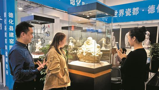24日,“白瓷之光——德化陶瓷艺术征集作品展”在福建省海峡民间艺术馆开展。本次展览由福建省民间文艺家协会、福建省海峡民间艺术馆主办,将延续到29日。这次征集的57位艺术家的作品造型风格各异,其中既有釉面温润、晶莹如玉的精美白瓷,还有将传统陶瓷雕塑与加彩技艺结合创新的瓷塑作品,充分彰显了德化陶瓷文化的深厚底蕴,吸引了不少游客驻足。 2019-07-27“德化白瓷”“德化玉瓷”“德化窑瓷器”成功注册地理标志证明商标